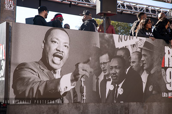 Photos from the Kingdom Day parade and King Fest in Los Angeles, King parade in Inglewood, the King memorial in Kennith Hahn Park, and a Sunday Second Line parade on MLK Jr. Blvd. in New Orleans.