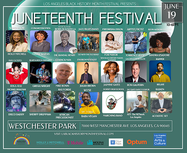 Los Angeles Black History Month Festival Juneteenth Festival - Westchester Park, Sunday, June 19, 10 A.M. - 6 P.M.