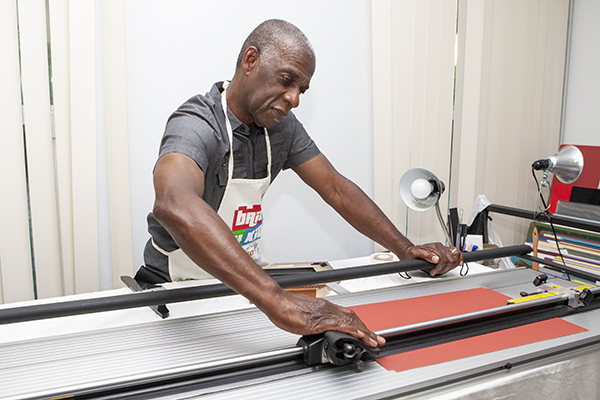 “The frame itself is a work of art and the artwork comes alive,” he said. “It jumps from a dull presentation to a shining presentation. Most people really don’t know that framing makes their entire art presentation enhanced. That’s where I come in. I love to make creative designs in the matting.”