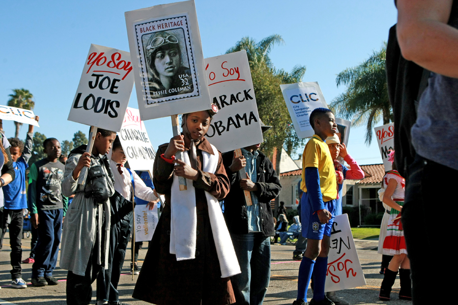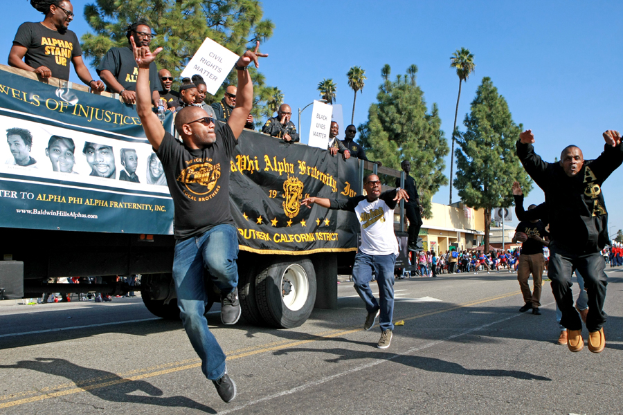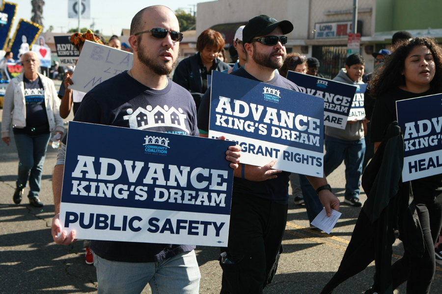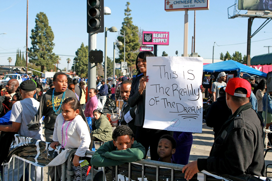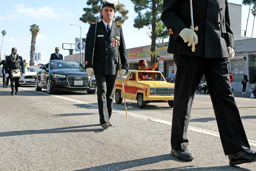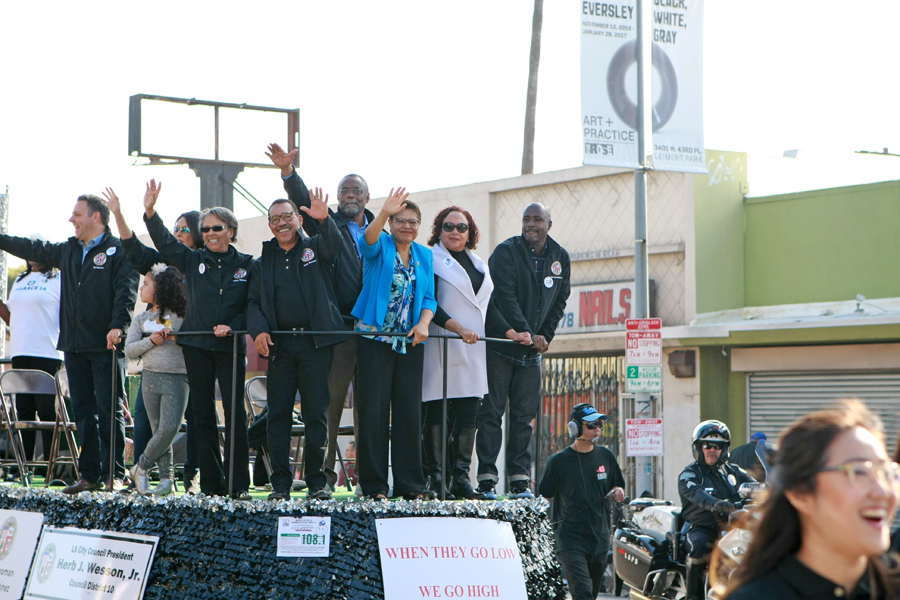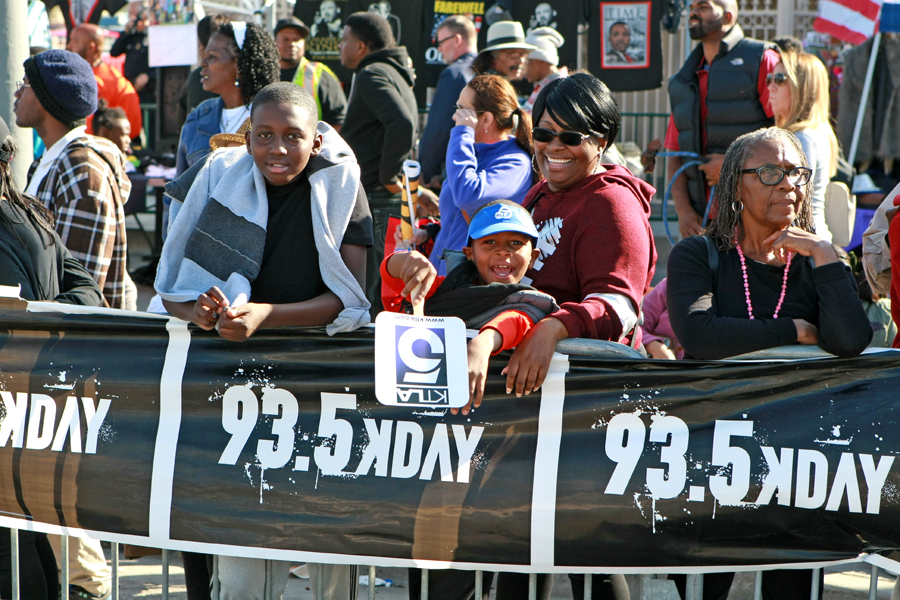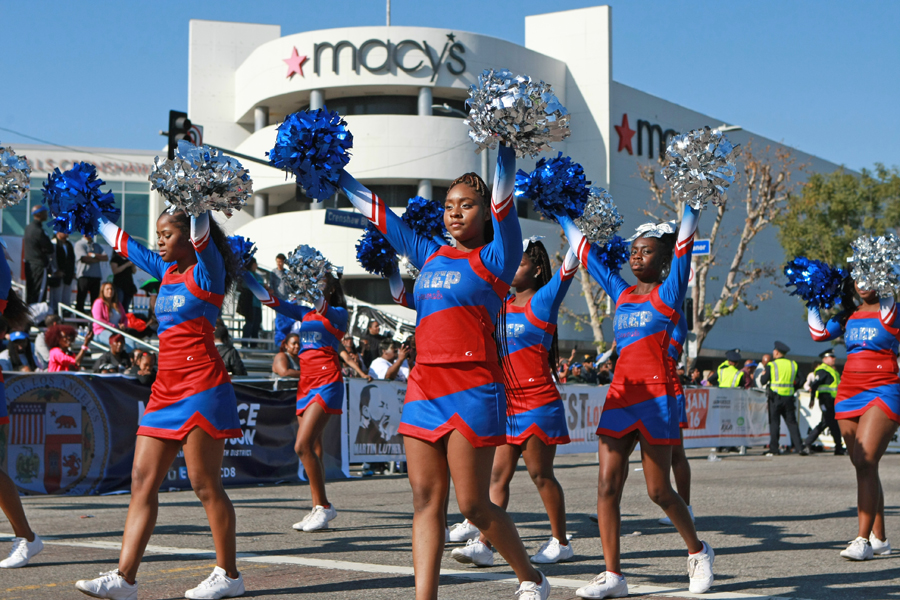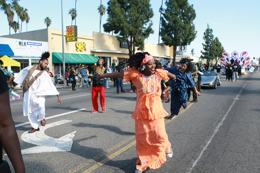 Photos from the Kingdom Day Parade, Martin Luther King Jr. Freedom Fest in Leimert Park, and the Martin Luther King Jr. Day Celebration at the California African American Museum (CAAM).