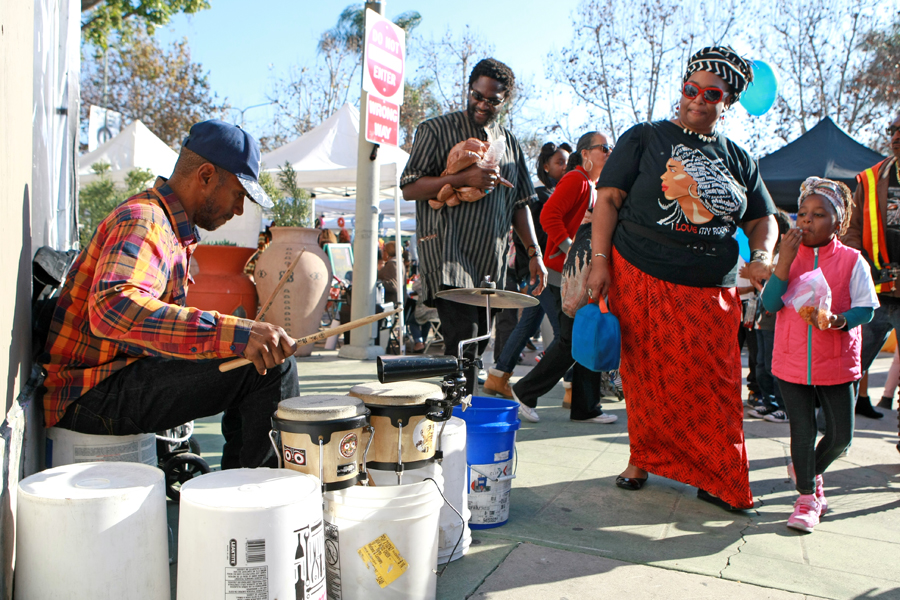Walking from one end of Degnan Blvd. in Leimert Park Village to the other at a recent art walk, which is held on the final Sunday of each month, a person would start off hearing the sounds of an African drum circle in the park.